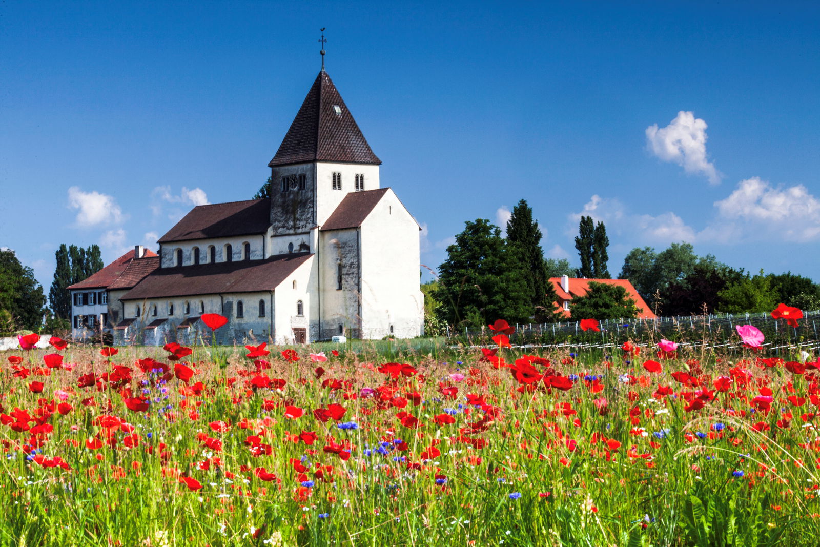 Die erste Etappe Ihrer Bodensee-Radtour führt Sie auf die Gemüseinsel Reichenau, deren Kloster im 10. Jahrhundert weitreichenden Einfluss besaß und 2001 zum UNESCO Welterbe erklärt wurde. Mit dem Schiff setzen Sie nach Gaienhofen über und radeln entlang der Halbinsel Höri, wo Hermann Hesse lebte, ins schweizerische Städtchen Stein am Rhein mit seiner schönen Altstadt. Hier verlassen Sie vorerst den Bodensee und folgen dem Rhein rund 20 Kilometer bis Schaffhausen. Statten Sie hier unbedingt am Nachmittag dem Rheinfall einen Besuch ab – sehr beeindruckend. Im Sommer stürzen 600.000 Liter Wasser pro Sekunde über die Felsen.