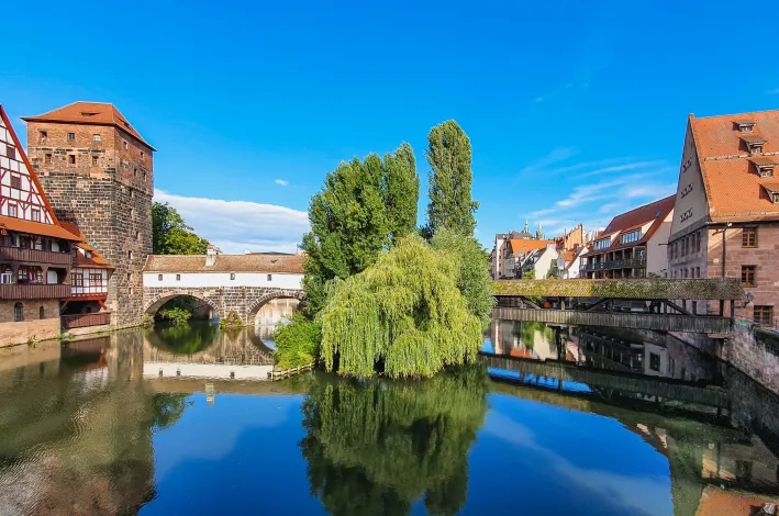 Nürnberg heißt Sie herzlich willkommen auf Ihrer Fünf-Flüsse-Rundfahrt für Sportliche. Berühmt für den Christkindlesmarkt ist die Stadt aller Welt. Doch sie ist zweifellos ein ganzjähriges Ziel. Die imposante Kaiserburg ist das heutige Wahrzeichen der Stadt, hier residierten alle Kaiser des Römischen Reichs bis 1571. Nürnberg liegt an der Pegnitz, das ist einer der fünf Flüsse, die Sie auf Ihrer Radtour begleiten werden. Wenn Sie Mieträder gebucht haben, stehen diese in Ihrem Hotel bereit.
