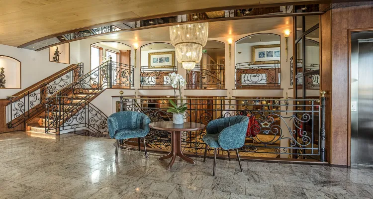 Gemütlich, elegant und stilvoll – das Premium-Schiff MS Swiss Crown bietet seinen Gästen allerlei Annehmlichkeiten, die durch eine entspannte Atmosphäre unterstrichen werden. Neben geschmackvoll und komfortabel eingerichteten Außenkabinen runden ein À-la-carte-Restaurant, ein Sonnendeck mit Whirlpool und Liegestühlen, eine Panorama-Lounge mit Bar sowie ein Wellnessbereich und eine Bibliothek das Angebot an Bord ab. Ebenso sorgt die Schiffscrew für Ihr leibliches Wohl und gestaltet Ihren Aufenthalt so angenehm wie möglich.