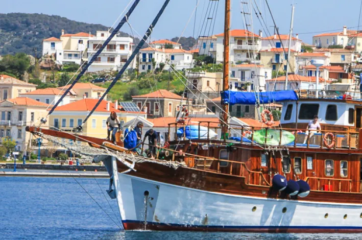 Am Morgen setzen Sie mit dem Schiff zur griechischen Insel Ägina über, die weit über die Landesgrenzen hinaus für ihre hochwertigen Pistazien bekannt ist. Ihre erste Radtour führt Sie zum beeindruckenden Tempel der Aphaia. Hoch oben gelegen, bietet er einen spektakulären Blick über die Umgebung. Am Nachmittag durchqueren Sie mit dem Schiff den Kanal von Korinth. Bei guten Wetterbedingungen geht die Reise weiter in Richtung Galaxidi, einem charmanten Küstenort mit maritimem Flair. Sollte das Wetter eine Weiterfahrt verhindern, erfolgt die Übernachtung in oder in der Nähe von Korinth.