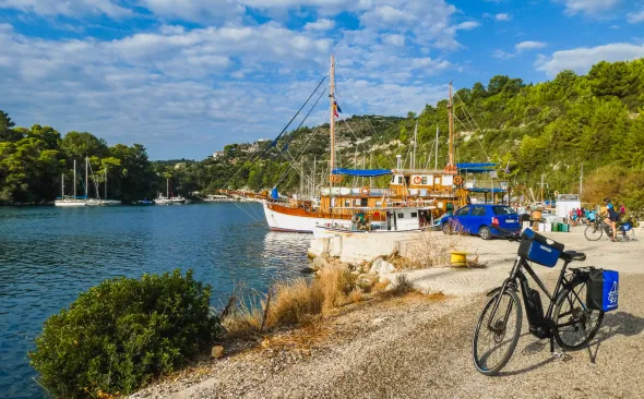 Nachdem Sie auf der heutigen Etappe Ihrer Reise mit Rad und Schiff rund um Korfu die Bucht von Fiskardo verlassen haben, erklimmen Sie die eindrucksvolle Höhenstraße an der Westküste. Genießen Sie das unvergessliche Panorama mit Blick auf den Myrtos-Strand. Die Region um den marmorweißen Kieselstrand steht unter Schutz und bietet somit ein besonderes Naturerlebnis. Abenteuerlich ist die Besichtigung der Tropfsteinhöhle von Melissani. Die funkelnde Höhle kann nur mit Ruderbooten erreicht werden. Weiter geht es nach Sami. Ab dort setzt Ihr Schiff die Segel in Richtung der Insel Ithaka.