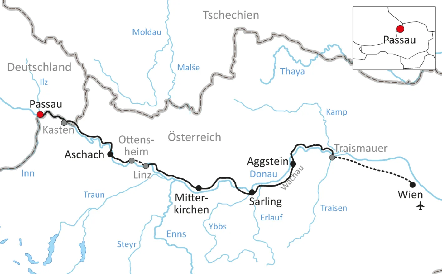 Erleben Sie die Donau von ihrer schönsten Seite! Der Radurlaub auf dem Bauernhof verbindet Bewegung, Naturgenuss und authentische Einblicke ins Landleben. Startpunkt ist die Drei-Flüsse-Stadt Passau, die mit ihrem mediterranen Flair und ihrer langen Geschichte begeistert. Von dort radeln Sie über die österreichische Grenze und entdecken beeindruckende Flusslandschaften, charmante Orte und kulturelle Sehenswürdigkeiten. Engelhartszell, Aschach und Linz laden zu genussvollen Pausen und spannenden Entdeckungen ein. In ländlichen Regionen wie dem Machland erleben Sie auf dem Radurlaub auf dem Bauernhof das bäuerliche Leben hautnah und tauchen im Freilichtmuseum Mitterkirchen in vergangene Zeiten ein. Weiter geht es durch den malerischen Strudengau und in die berühmte Wachau – eine Region voller Burgen, Schlösser und idyllischer Weindörfer. Besonders beeindruckend sind das Stift Melk und die Burgruine Aggstein, die hoch über der Donau thronen. Der krönende Abschluss Ihrer Reise erwartet Sie in Wien, wo Sie die Hauptstadt Österreichs mit all ihren kulturellen Highlights und kulinarischen Genüssen genießen. Außer in Passau und Wien übernachten Sie auf gemütlichen Bauernhöfen oder in kleinen Landgasthöfen – ideal, um sich abseits des Trubels in naturnaher Umgebung zu erholen und das echte Landleben zu erleben.