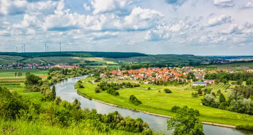 Sie lassen Schweinfurt hinter sich und radeln gemütlich durch herrliche Weinberge, romantisch gelegene Dörfer und die bekannte Volkacher Mainschleife. Kurz vor Volkach befindet sich die Wallfahrtskirche Maria im Weingarten, die die berühmte schwebende Riemenschneider-Madonna beherbergt. Legen Sie in Volkach eine ausgiebige Mittagspause ein und erkunden Sie die malerische Altstadt. Bis nach Sommerach folgen Sie weiterhin der Mainschleife. Nun ist es nicht mehr weit bis in Ihr Tagesziel Kitzingen. Wahrzeichen der Stadt sind der Falterturm mit seinem schiefen Turmhelm und die Alte Mainbrücke.