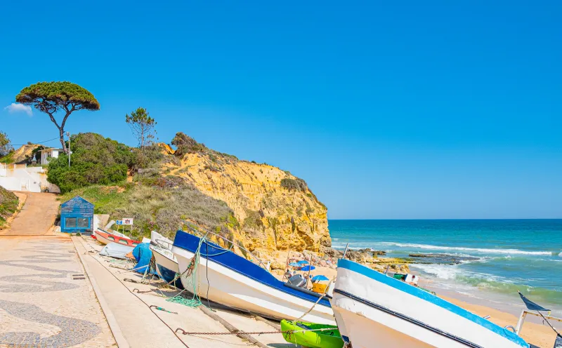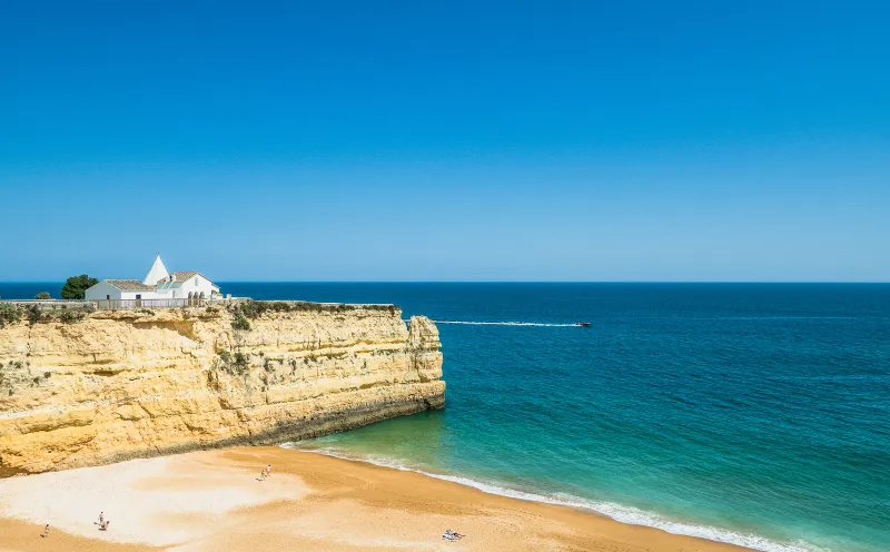 Nachdem Sie den Fluss Arade überquert haben, geht es vorbei an Oliven-, Zypressen-, Orangen- und Korkeichenbäumen über Lagoa zurück ans Meer. Ungefähr auf halber Strecke lohnt ein Zwischenstopp an der Capela de Nossa Senhora da Rocha. Die Kapelle liegt auf einer schmalen Landzunge und bietet einen wunderschönen Blick auf die tosenden Wellen des Atlantiks. Weiter geht es in Ihren Übernachtungsort Albufeira. Die Innenstadt schmiegt sich malerisch an eine weitläufige Bucht. Unweit des Zentrums befindet sich der Praia dos Pescadores. Früher ein Ort der Fischer, heute einer der beliebtesten Strände der Stadt.