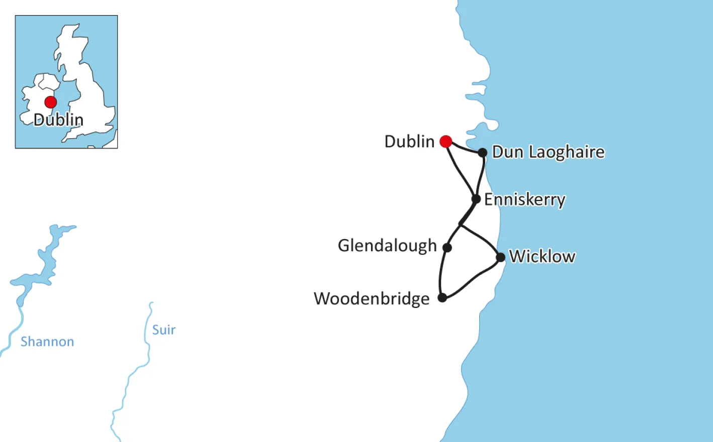 Die abwechslungsreiche Route bietet sowohl sportliche Herausforderungen als auch entspannte Etappen. Lassen Sie sich von Irlands wilder Schönheit begeistern, genießen Sie traditionelle Pub-Abende mit Live-Musik und kehren Sie mit unvergesslichen Erinnerungen zurück. Diese Tour ist ideal für aktive Entdecker, die das Beste aus Irlands Osten erleben möchten.