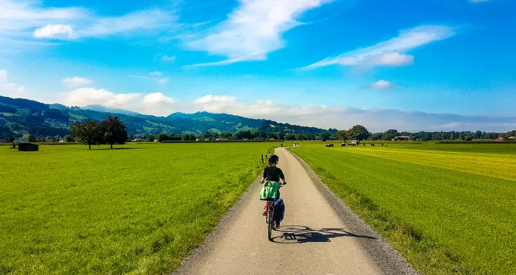 Für uns die schönste Strecke oder der Tag an dem alles passte, war an Tag 3 zwischen Lindau und Arbon, als wir aus Deutschland durch Österreich in die Schweiz radelten. Das Wetter war top, die Landschaft wieder einmal anders und satt grün, die Räder rollten entspannt und es fühlte sich einfach nach Urlaub mit Picknick am Wegesrand an. Aufgrund der zu dieser Zeit ausgerufenen Corona-bedingten Risikozonen durften wir das österreichische Vorarlberg zwar durchfahren, aber nicht groß anhalten. Zum Glück konnten wir vom Radweg aus einen Blick auf die beeindruckende Seebühne in Bregenz werfen und sind uns sicher, dass der Besuch eines dortigen Festspiels ein Erlebnis sein muss.
