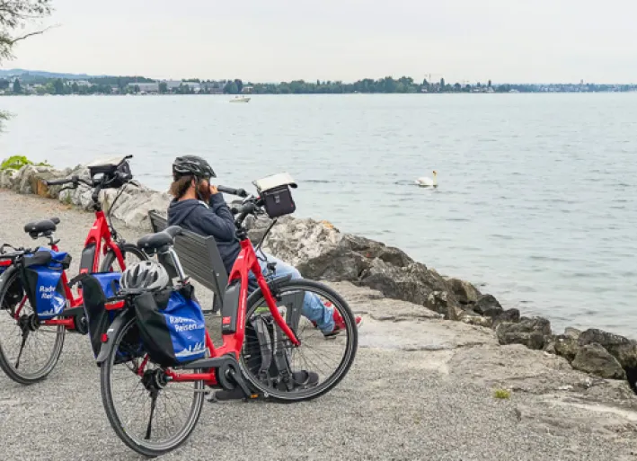 Nach unserer Ankunft in Konstanz und dem Check-In in dem gemütlichen Hotel sind wir innerhalb von circa 20 Minuten zum Fahrradstützpunkt von Radweg-Reisen gelangt. Der Empfang dort war freundlich und äußerst hilfsbereit. Man fühlte sich sehr gut aufgehoben. Alle Änderungswünsche (Sattelstellung, Packtaschen etc.) wurden berücksichtigt. Es gab gleich ein leckeres Eis. So kann es gerne weitergehen.