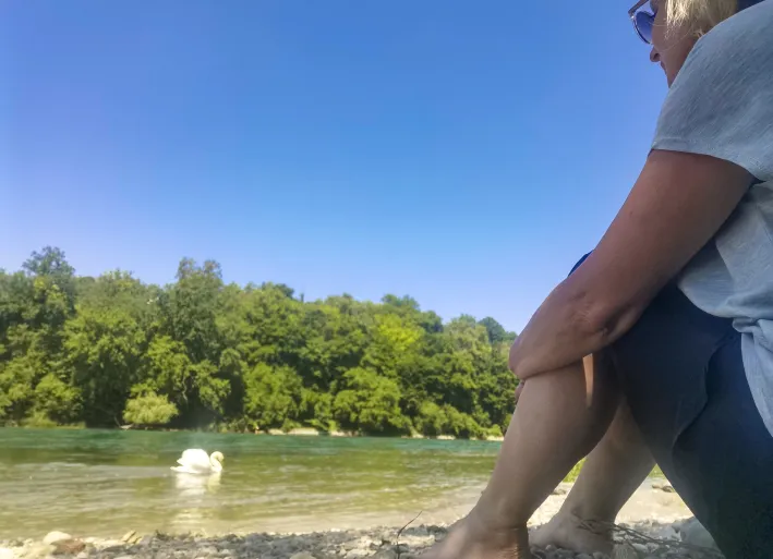 Also startete meine erste alleinige Radel-Tour in Konstanz und führte mich bei Sonnenschein erst mal weg vom See in die Schweiz nach Schaffhausen. Nach einem anstrengenden, aber total schönen Weg kippte ich abends in mein schnuckeliges Hotelbett. Am zweiten Tag ging es erst mal sehr anspruchsvoll los Richtung Rheinfall, bevor der Weg zurück zum See anstand. Die Beschilderung in der Schweiz ist ehrlich gesagt nicht optimal, aber mithilfe der Reiseunterlagen und Google Maps ist der Weg gut machbar mit ganz vielen tollen Rastplätzen, die ich zum Teil ganz alleine mit meinem Buch genutzt habe.