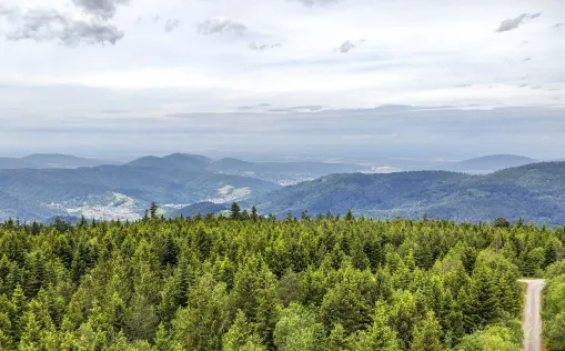 Am nächsten Tag, wir konnten es kaum erwarten loszuradeln, ging es mit der Bergbahn hinauf auf den Sommerberg und dann 30 Kilometer durch den wunderschönen Schwarzwald. Am Hohlohturm machten wir Halt und wir Frauen hatten noch reichlich Energie für den Aufstieg. Welch ein wunderbarer Blick über die Baumwipfel des Schwarzwaldes. Zufällig war ein einheimischer Herr zugegen und so kamen wir in den Genuss von vielen Erklärungen zur näheren und weiteren Umgebung.