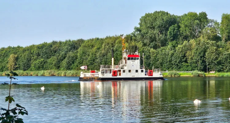 Einen ganzen Tag ging es entlang des Nord-Ostsee-Kanals. Leider war auf dem Kanal fast nichts los – zwei, drei größere Schiffe waren während der Tour zu beobachten, ansonsten waren eher kleinere Segelboote unterwegs. Mit Fähren konnte man immer mal wieder das Ufer wechseln und so wahlweise mehr oder weniger Sonne abbekommen. Ein paar Meter des Radwegs waren auf beiden Seiten aus unerfindlichen Gründen gesperrt – hier gab‘s einen etwas abenteuerlichen „Schleichweg“ durch den angrenzenden Wald. Der war aber gut zu finden und auch nur sehr kurz – alles in allem kein großes Problem. Immer wieder luden schöne Stellen am Ufer zu einer kurzen Rast ein. Es lohnt sich auf jeden Fall, für den Tag genug Wasser und Verpflegung mitzunehmen. Zwar gibt es immer mal wieder vor allem an den Fähren einen Kiosk oder ein kleines Restaurant, aber die sind ziemlich rar gesät. Gegen Mittag war ich dann schon in Rendsburg – und da war das erste Abenteuer, mit dem Rad die längste Rolltreppe Europas hinunterzufahren, um den NOK zu unterqueren – das war schon ein Erlebnis. Hoch ging es dann aber lieber mit dem Aufzug. Erste Amtshandlung war dann natürlich eine Fahrt mit der Schwebefähre über den NOK. Zugegeben: Von außen ist das beeindruckender, als wenn man selbst mitfährt. Aber auf jeden Fall ein Erlebnis. Direkt an der Fähre gibt’s noch die Schiffsbegrüßungsanlage mit angeschlossenem Restaurant. Da gab’s dann noch ein Stück Kuchen – zu begrüßen gab es allerdings nicht viel. Mit dem Rad ging es dann durch Rendsburg, vorbei am schönen Paradeplatz (da gibt’s eine sehr leckere Pizzeria) zum Hotel. Ich war erst etwas skeptisch, da das Hotel direkt an einer viel befahrenen Straße liegt, aber der Straßenlärm nimmt abends deutlich ab, sodass ich auch hier mit offenem Fenster schlafen konnte. Der Check-in erfolgt über eine Tasche mit dem Zimmerschlüssel im angrenzenden Fahrradschuppen mit Lademöglichkeit. Das Hotelpersonal sieht man eigentlich nur beim Frühstück oder beim Auschecken am nächsten Morgen.