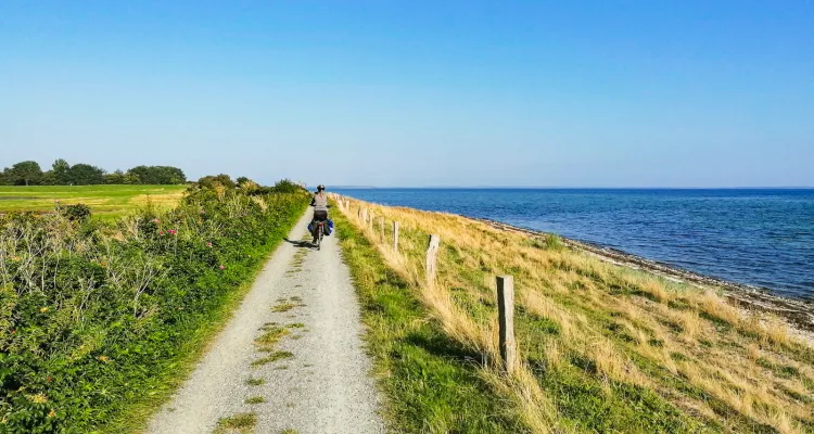Weiter geht es von Svendborg über Nyborg nach Kerteminde. Für unsere letzte Etappe nach Odense wartet ein ganz besonderer Auftrag auf uns: Fyns Hoved. Der nordöstlichste Zipfel Fünens ist noch ein weißer Fleck auf unserer Radweg-Reisen-Karte. Die Frage, die wir uns hier stellen: Lohnt sich die Tour dorthin? - Oh ja, das tut sie! Denn es geht tief hinein ins wilde Dänemark. Auf dem Weg zur Spitze ist kaum ein Mensch zu sehen. Dafür gibt es Wälder, Felder, Wiesen, Hügel und ganz viel Meer. Und wer einen Hirsch mit königlichem Geweih nur wenige Meter an sich vorbeilaufen sieht, kann sich der Natur kaum näher fühlen. Ganz froh sind wir allerdings, dass wir uns ein Lunchpaket mit smørbrød mitgebracht haben. Denn in diesem einsamen Teil des Landes gibt es kaum ein Café oder einen Imbiss.